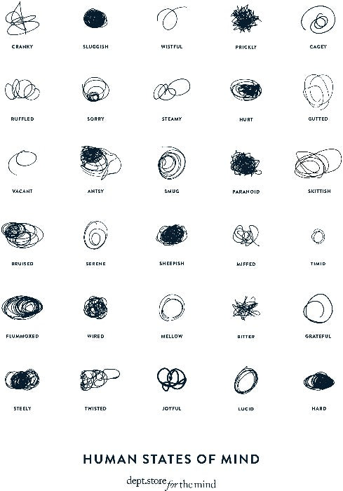 Wired or wistful, prickly or paranoid, skittish, steamy, smug or sheepish. This ingenious and beautiful wall chart celebrates the kaleidoscopic array of our human emotions. Now in an A3 size.