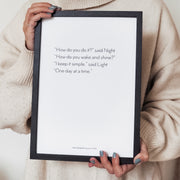 Lemn Sissays famous One Day At A Time poem as an A4 print on high quality paper.